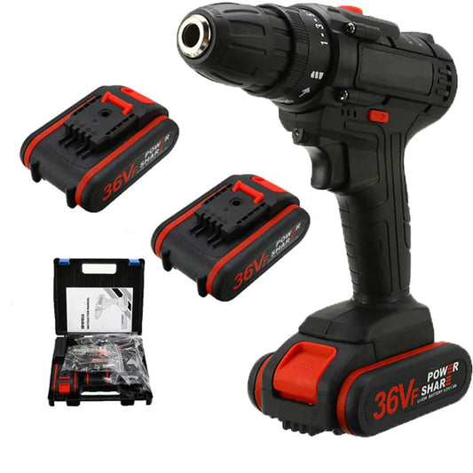 Trapano Avvitatore a Batteria 36V con Torcia, 2 Batterie e Valigetta