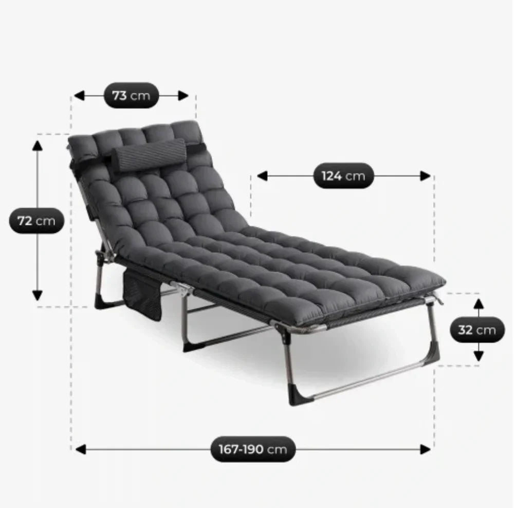 • Struttura pieghevole leggera con tasca laterale – telaio stabile in alluminio/metallo, facile da trasportare e riporre, con tasca per telefono, libro o bevanda.